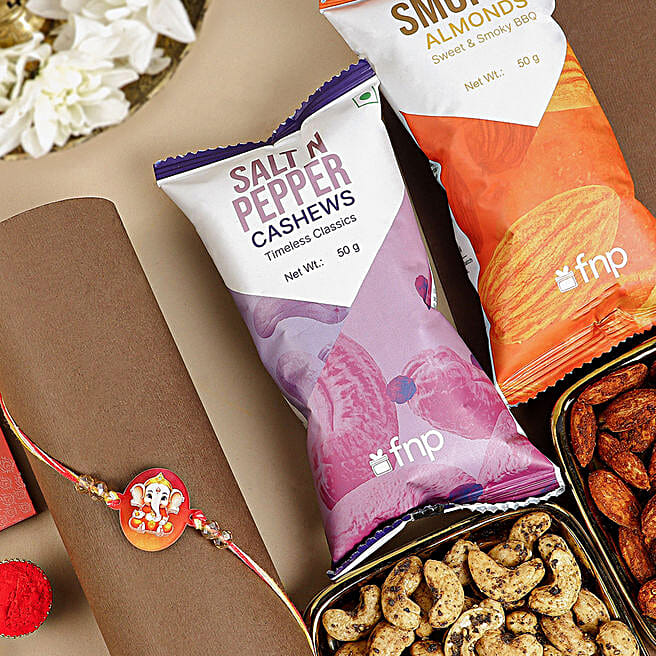 Sculpted Ganesh 3D Rakhi & Nuts Combo
