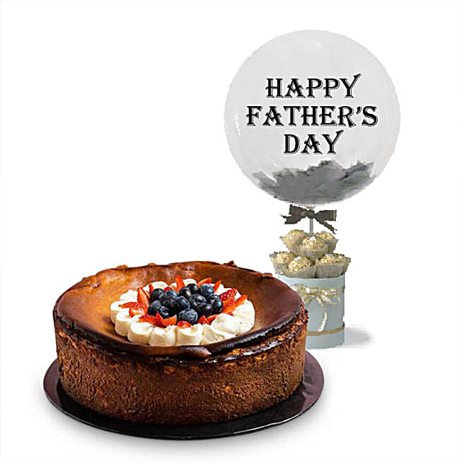 Berries Burnt Cheesecake - with Happy Father Day Balloon and Chocolate