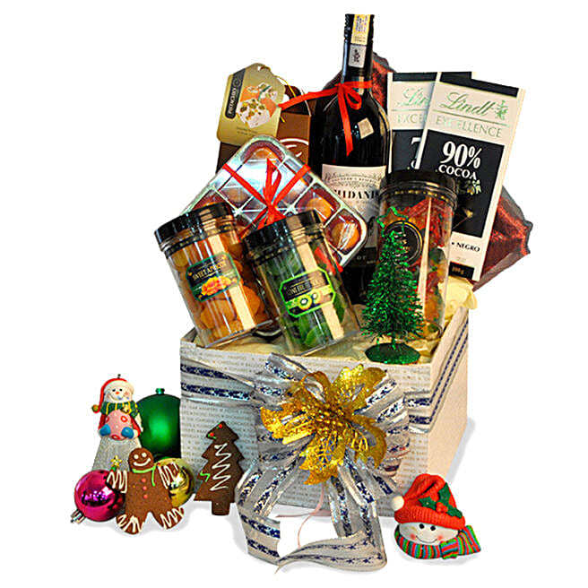 Merry Christmas Wine And Delightful Treats Hamper