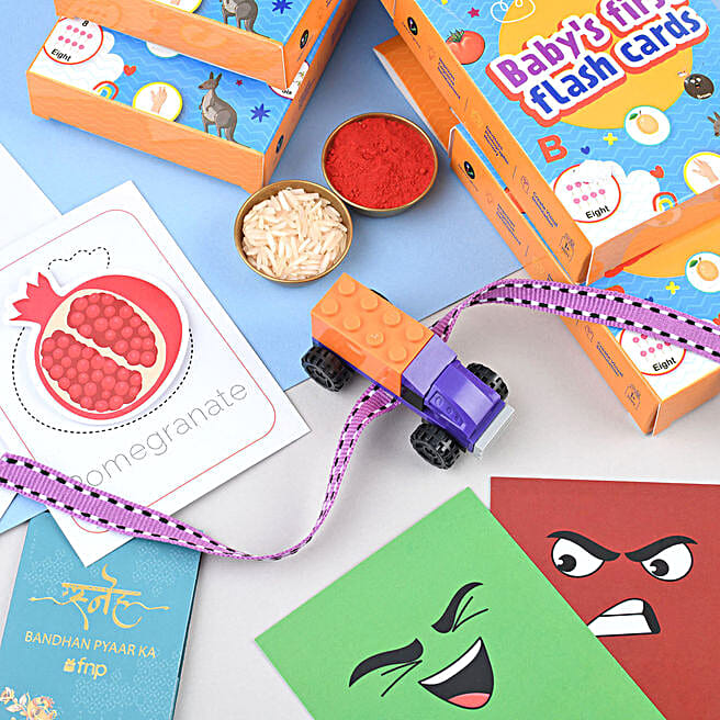 Lego Truck Rakhi N Multiple Flash Cards Gift Hamper