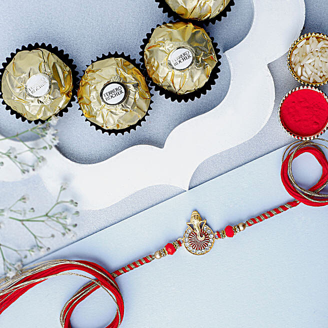 Ethereal Ganesha Harmony Rakhi & Ferrero Delight