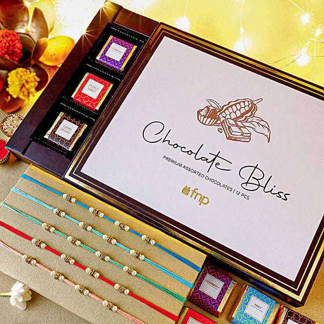 Understated Elegance Rakhi Bundle Set of 5 & Chocolate Bliss
