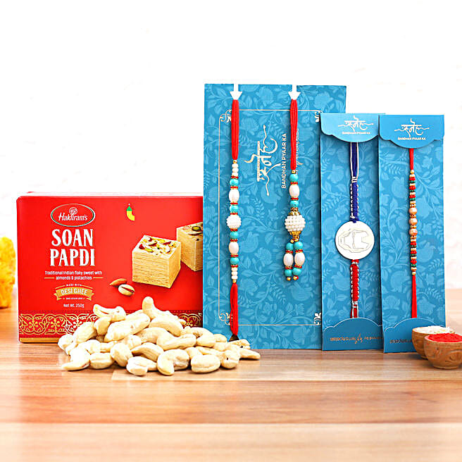 Family Rakhi Set With Cashew And Soanpapdi