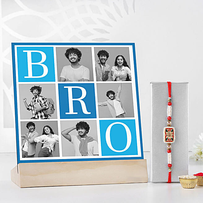 Pearly Style Rakhi & Personalised Frame For Brother