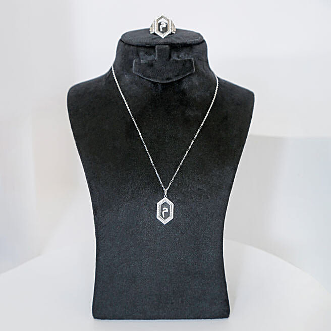 Hexagon Necklace & Adjustable Ring | Letter M