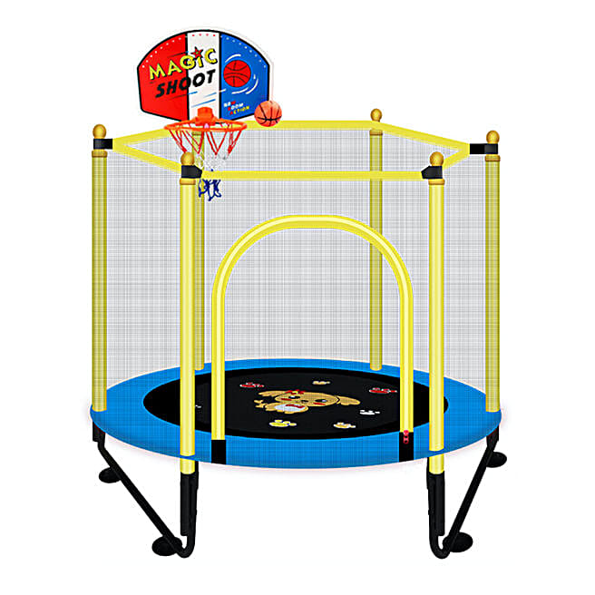 Jumping Trampoline For Kids With Basketball Hoops And Safety Net