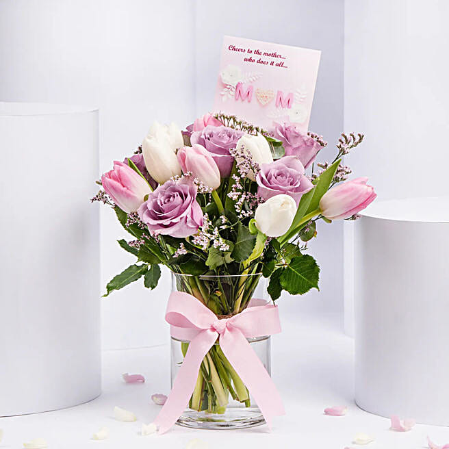 Mom Tender Love Rose And Tulips