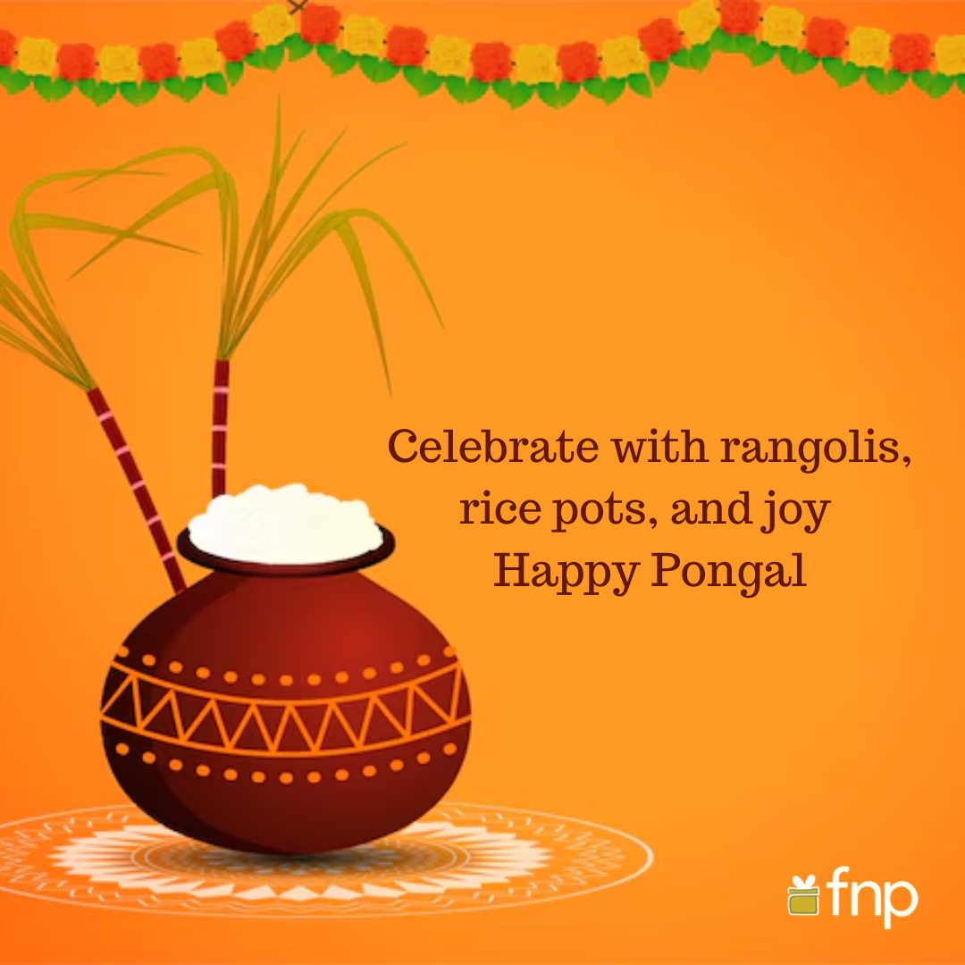 Pongal is a popular festival that is celebrated for four days with a lot of grandeur. If you want to increase the joy of the occasion, you should send Happy Pongal wishes to the people close to your heart. The festival usually makes friends and family gather together for celebrations. Dressing up, making rangolis, and gobbling up delicious food are some of the major characteristics of the festival. But your heart might ache if you are unlikely to celebrate Pongal with friends and family this year. To ensure that you don’t fail to celebrate the festival, we have a huge collection of messages, greetings and gifts for Pongal. Sending special gifts, along with heartwarming messages, to mark the festival will make your loved ones realise that you haven’t forgotten about them on a joyous day. We have curated a long list of happy Pongal wishes that will well complement our gifts, including flower bouquets, fruit baskets, and dry fruit hampers. If you want to add a contemporary touch to the celebrations, you can send flavoursome traditional cakes with our lovely Pongal quotes. Scroll through our next section of Pongal greetings to surprise your favourite people on Pongal.
