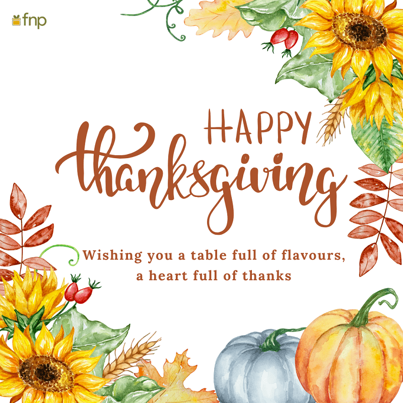 Other than the well-seasoned turkey, the baked goods, the sides, the decor, the table settings and so much more - Thanksgiving is also about taking a pause and a moment to reflect on what you are most grateful for. This cosy holiday offers a beautiful opportunity to spend time with people who make our lives special. Even if you are unable to spend the day with them, you can always make your presence count by sending Thanksgiving Day gifts as well as heartwarming wishes. And we understand how hard it can get to find the perfect words that express your gratitude the way you want. That’s why, FNP has put together a whole page comprising inspirational and emotional Thanksgiving Day wishes, quotes, status and stickers. You can share them as a part of your annual family toast or forward them to your near and dear ones in case you won’t be able to attend the festivities. So, if you are on the lookout for heartfelt Thanksgiving Day wishes or greetings for your friends, family and colleagues, jump to our next section.