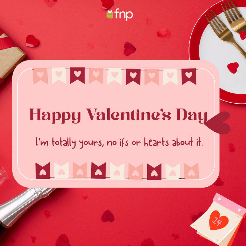 ‘Where there is great love, there are always wishes.’, quotes Willa Cather. Sometimes, a thoughtful wish or message is enough to leave the recipient smiling all day long. Even a word or two can go a long way in strengthening the bonds. We do understand that choosing the right words can sometimes be tedious. But no fear for Ferns N Petals is here. If the pressure of making Valentine’s Day has caused your words to escape your mouth, turn to us and borrow some amazing Valentine’s Day wishes to make your sweetheart feel loved. Given our aww-some wordplay, your partner will be jumping with happiness. Our site is well-packed with swoon-worthy quotes, wishes and messages for the entire Valentine’s week. So even if you are looking for some inspiration for Kiss, Teddy, Promise Day, we have cute Kiss Day quotes, Teddy Day wishes and Promise Day quotes respectively. All these quotes will add a special touch to your sentimental gifts and let your lover know how much they mean to you. Watch their happiness multifold with this gesture. You can also choose to order a greeting card from us, hand address it with any of these sweet quotes and present it to your partner in person. Talk about next-level surprises! With us, you can go way beyond ‘TOGETHER 4EVER’ and ‘I Love You’ given our collection of Happy Valentine’s Day quotes. We promise that you won’t go wrong with our Valentine’s Day quotes, messages and wishes as they reflect your love in a simple, endearing way. If you are looking for something more detailed and visually appealing, our Valentine's Day images are just perfect. Your partner will appreciate these loving messages/stickers and remember them forever. You can either pick from our collection or use them as inspiration to jot down a personalised wish of your own. So, without any further delay, send these messages to your beloved this Valentine's Day on Whatsapp, Facebook, Instagram, Telegram or Snapchat. Have a happy Valentines Day 2026!