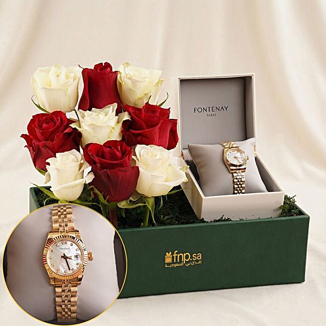 fontenay women watch with red n white flower box