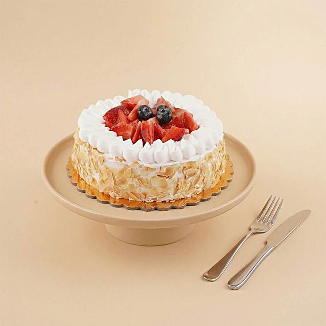 Strawberry Mousse Almond Flakes Cake
