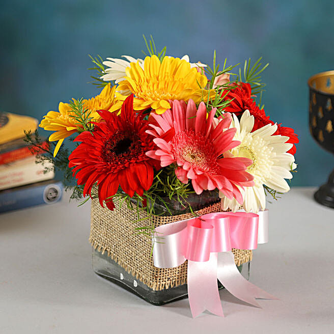 8 Petite Mixed Gerbera Floral Vase
