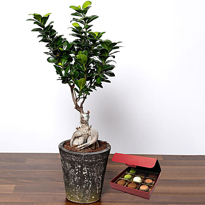 Ficus Bonsai Plant with No Sugar Chocolate