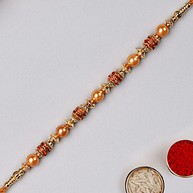 Golden Red Pearl Thread Rakhi