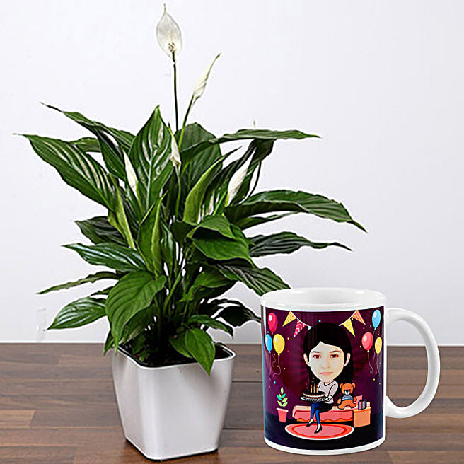 Lily Plant With Birthday Caricature Mug