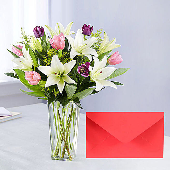 Medley Of Lilies And Tulips With Greeting Card