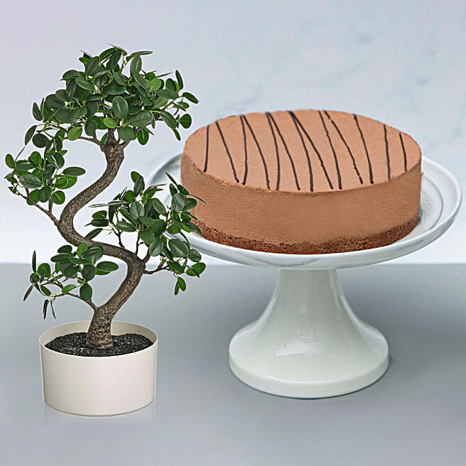 Truffle Cake with Beautiful Bonsai Plant