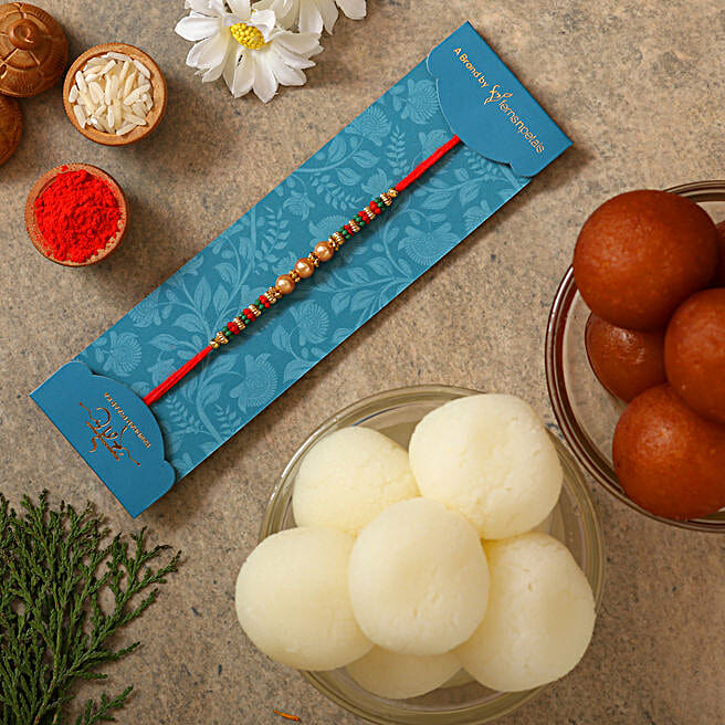 Pearl Mauli Rakhi With Gulabjamun And Rasgulla