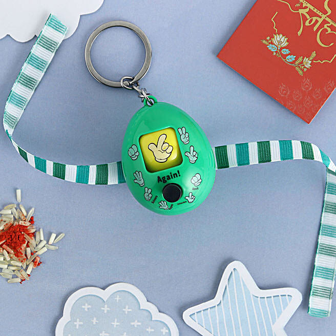 Playful Rock-Paper-Scissors Toy Rakhi- Green