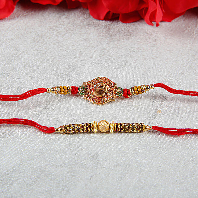 Elegant Designer Aum Golden Rakhi Set