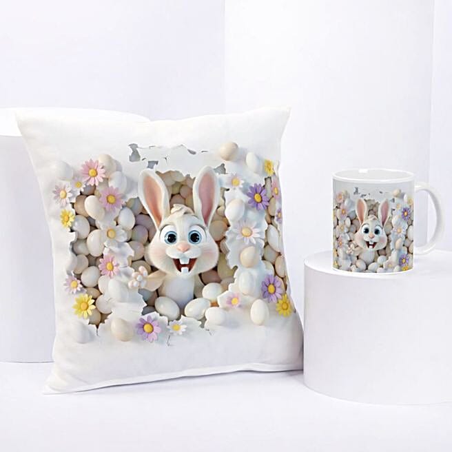 Cute Easter Bunny Cushion and Mug Set