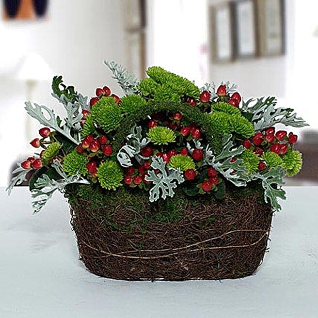 Hypnotic Chrysanthemum N Hypericum Christmas Flower Basket