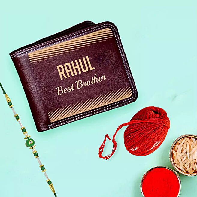 Personalised Mens Wallet With Rakhi