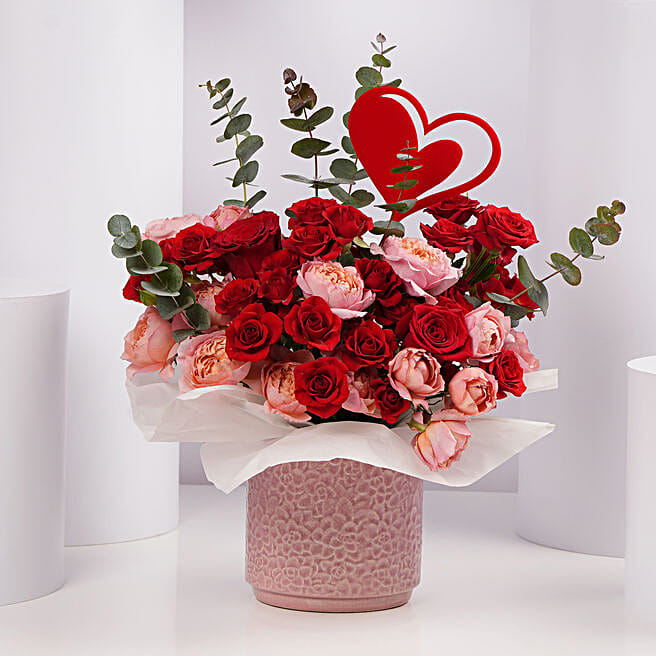 Romantic Valentine Rose Arrangement in Flower Box