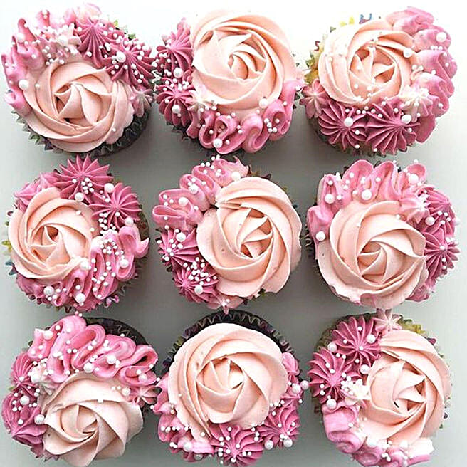 Rosy Delight Designer Vanilla Cupcakes Set Of 6