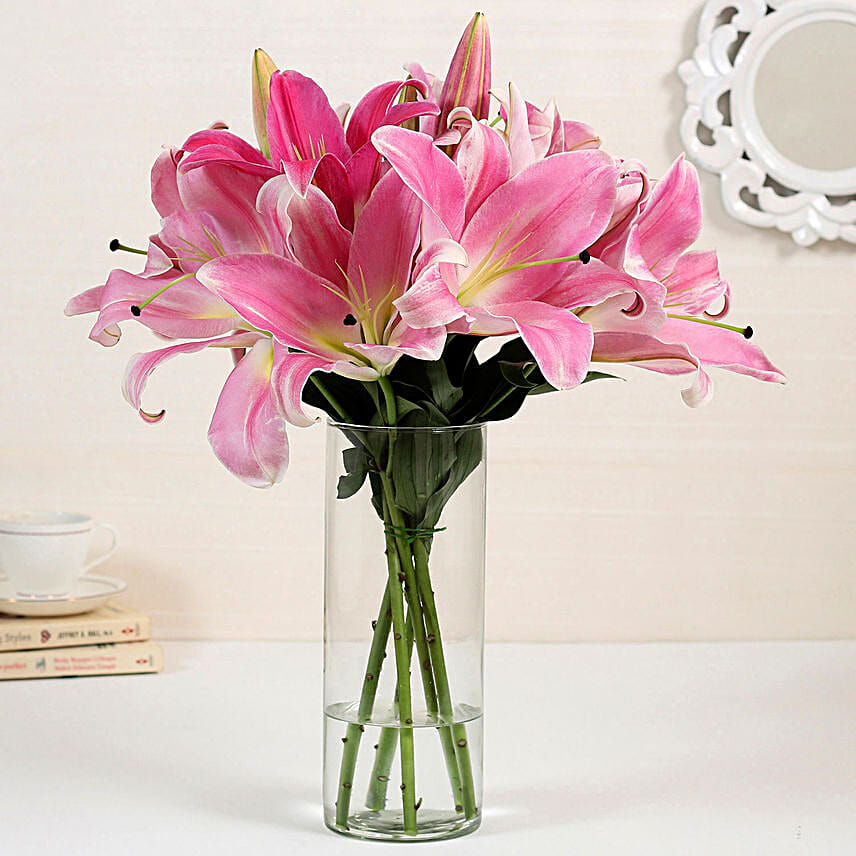 Arranged together to create a mesmerizing effect on the receiver. Gift this pink oriental lilies vase to impress someone special.