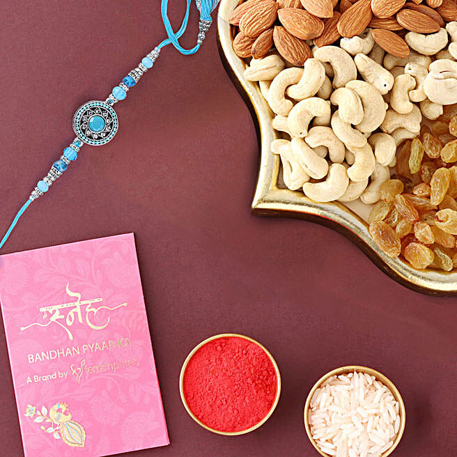 Sneh American Diamond Elegant Rakhi & Mix Nuts