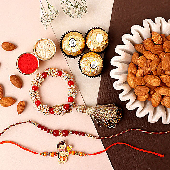 Sneh Delightful Family Rakhis with Almonds and Ferrero Rocher