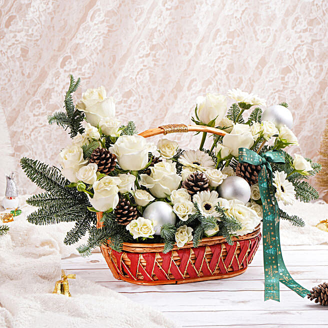 White Wineter Flowers Basket