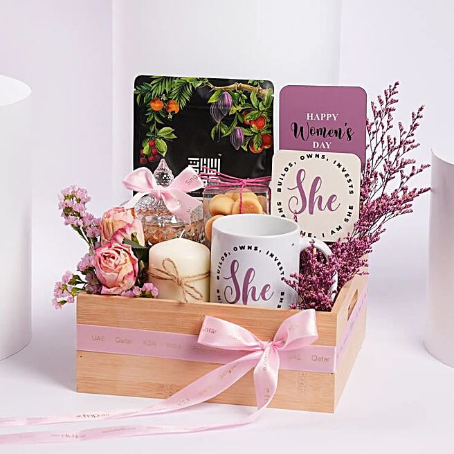 Womens Day Tulips And Roses Box With Candles