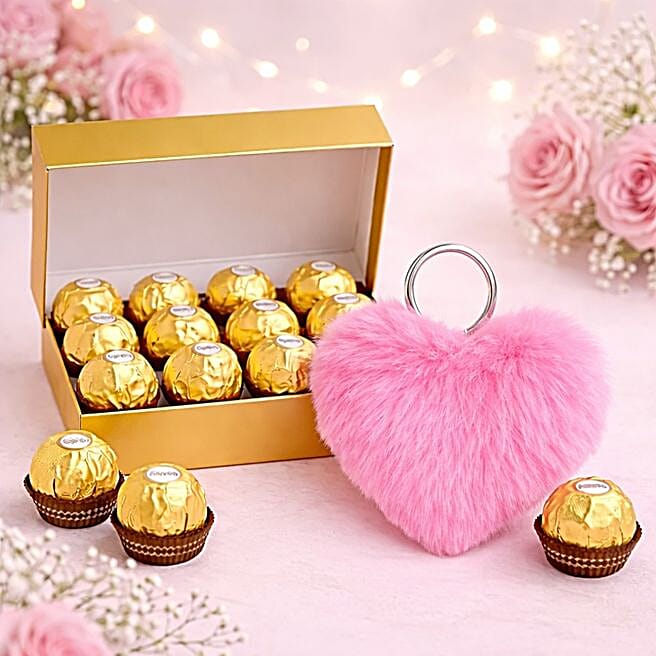 Ferrero Rocher Chocolates with Pink Heart Keyring