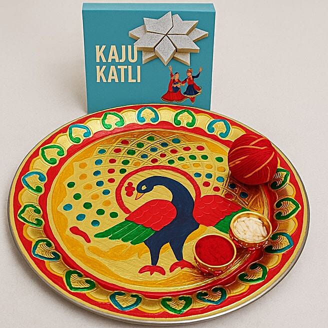 Royal Indulgence Kaju Katli n Peacock Thali Set