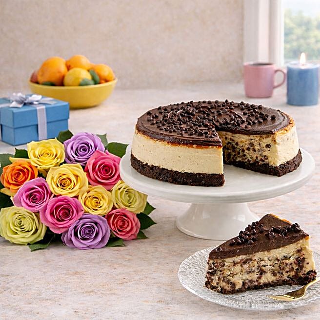 Chocolate Cheesecake and Colorful Roses