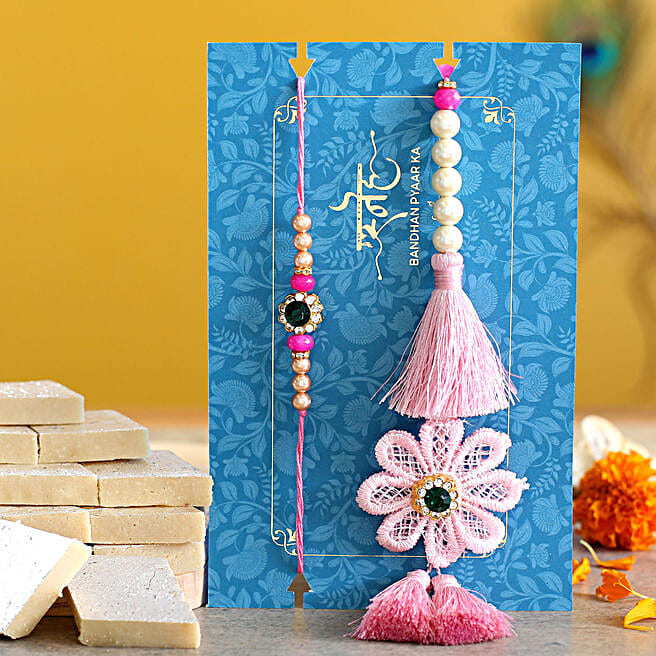 Crochet Flower Lumba Rakhi Set With Kaju Katli Exp