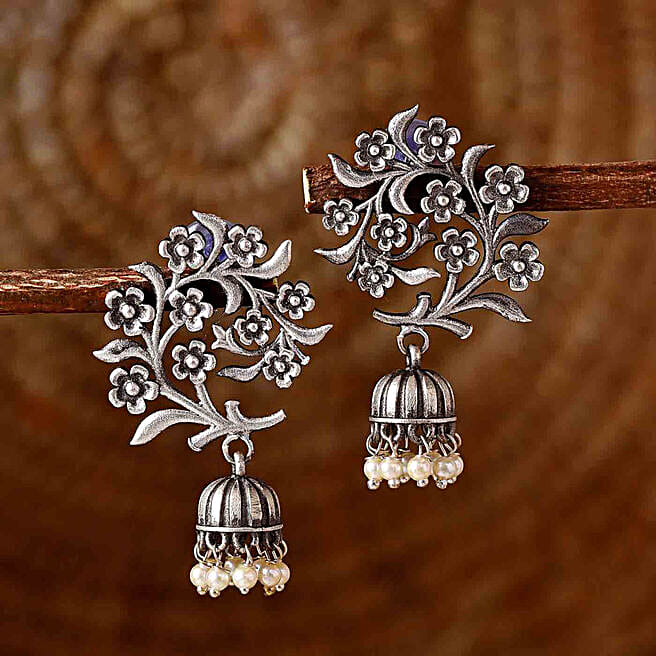 Floral Bliss Silver Oxidised Earrings