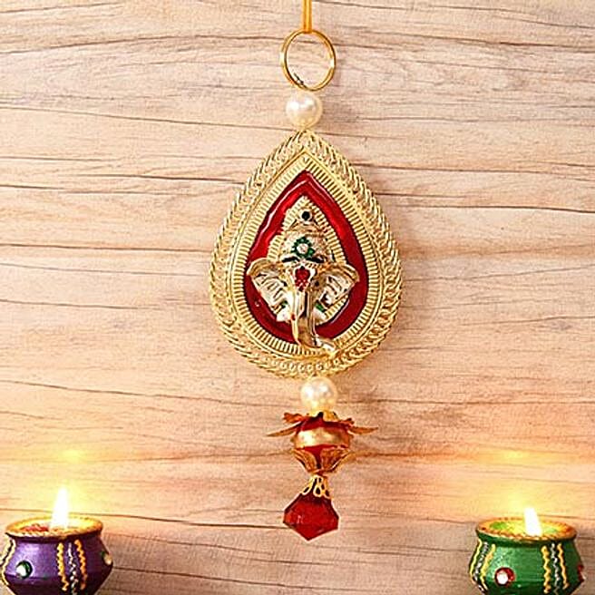 Metallic Leaf Shaped Ganesha Hanging