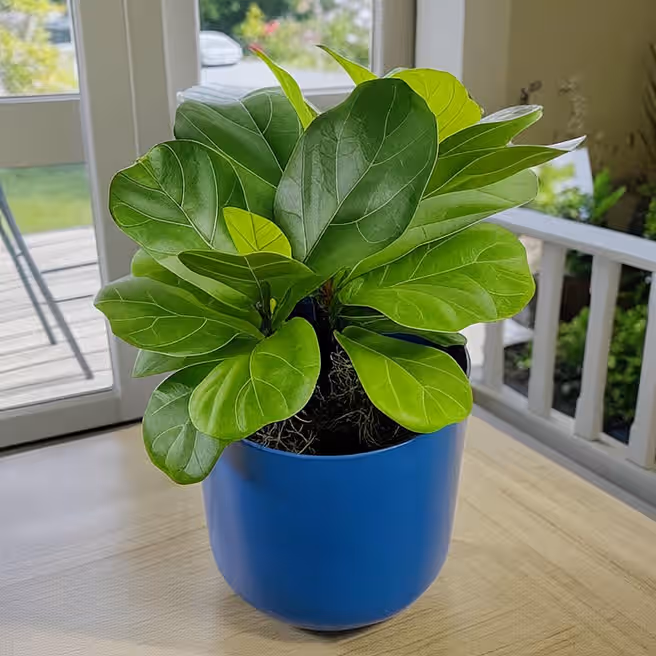 Modern Ficus Lyrata Plant in Blue Pot - 6 inches
