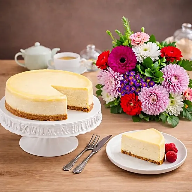 New York Cheesecake and Mixed Flowers