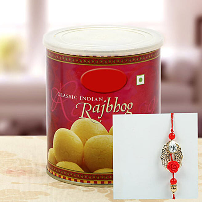 Rajbhog with Rose Stone Rakhi