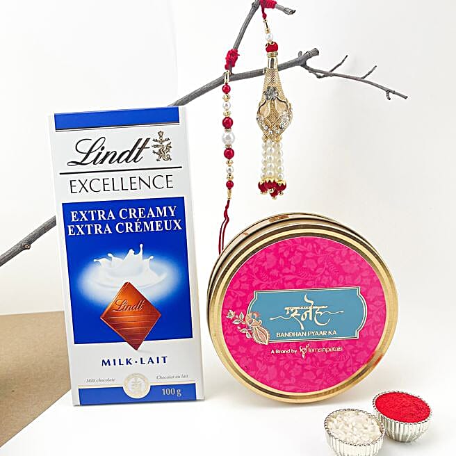 Sneh Fancy Bhaiya Bhabhi Rakhi Set N Lindt Chocolate