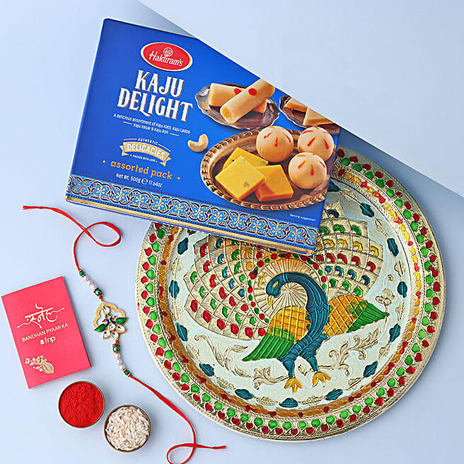 Sneh Meenakari Peacock Rakhi & Pooja Thali