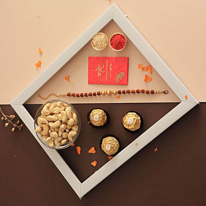 Sneh Rudraksha Rakhis With Cashews & Chocolates